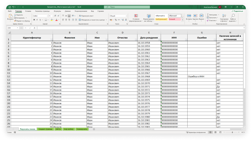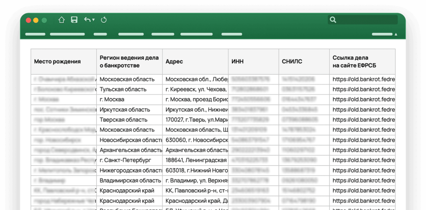 Массовое отслеживание статусов банкротств физических лиц сразу из нескольких источников