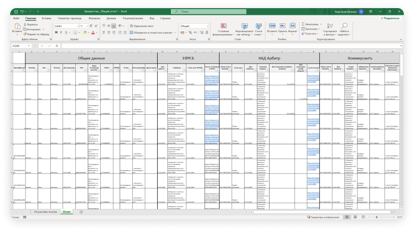 Расширенные данные в двух отчетах: из ЕФРСБ и КАД Арбитр